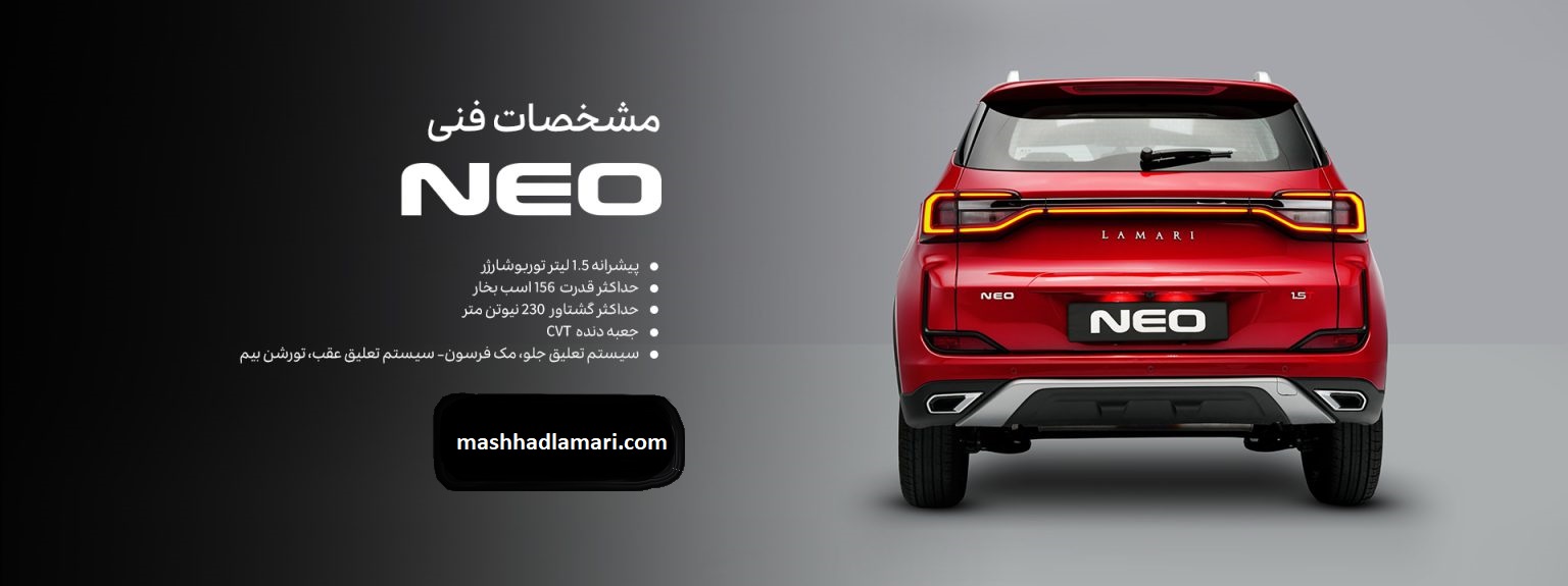 لاماری نئو LAMARI NEO را در نمایندگی هاشمی سیگاری مشهد بررسی کنید. مشاهده قیمت روز، مشخصات فنی، امکانات رفاهی، تصاویر و شرایط خرید این خودروی جدید لاماری با مشاوره تخصصی و خدمات معتبر.